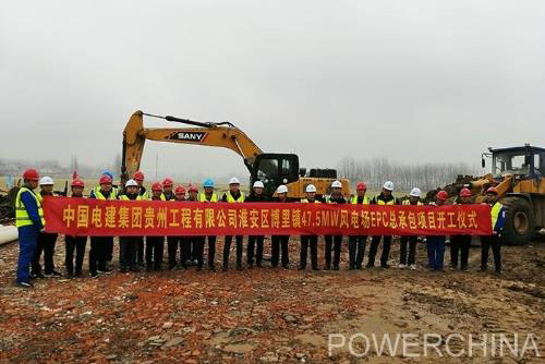 12月22日11點18分,中國電建集團貴州工程有限公司承建的淮安區(qū)博里鎮(zhèn)47.5兆瓦風(fēng)電場EPC總承包項目開工儀式在機器的轟鳴聲和人員的歡呼聲中拉開了帷幕。