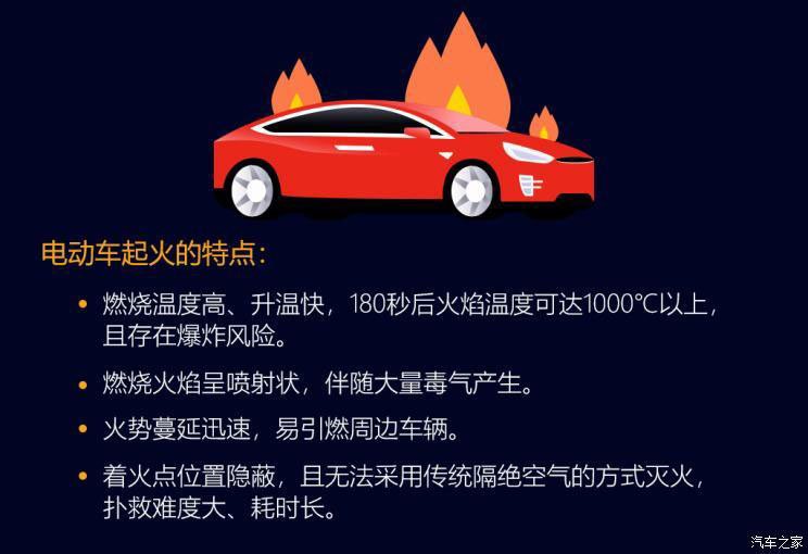 相比汽油車來(lái)說(shuō),電動(dòng)車起火的特點(diǎn)有很大不同: