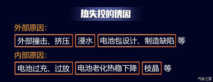 從已知的引發(fā)熱失控的原因來(lái)看,大體可以分為外部原因和內(nèi)部原因。外部原因如底盤(pán)的撞擊、擠壓、浸水等都是比較常見(jiàn)的;內(nèi)部原因如電池的過(guò)充、過(guò)放,電池老化、枝晶等現(xiàn)象,也被認(rèn)為是今年多起自燃事件的“元兇”。