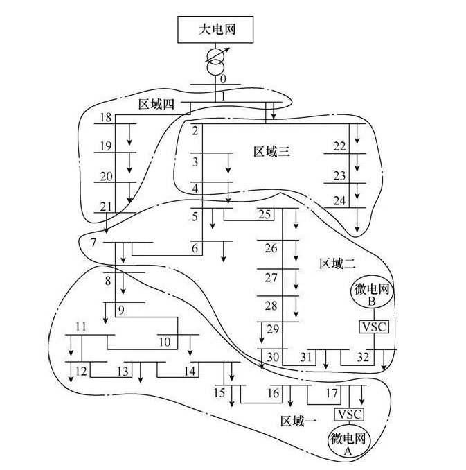 圖6 IEEE 33節(jié)點(diǎn)系統(tǒng)圖