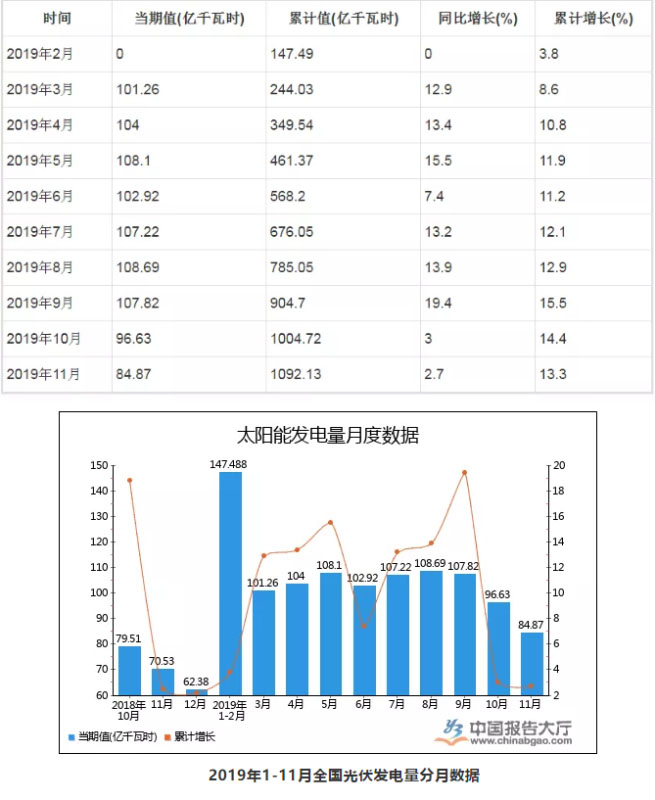 2019年1-11月全國光伏發(fā)電量分月數(shù)據(jù)