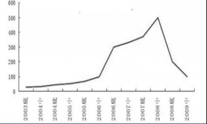 2008年開始,在全球金融危機(jī)的沖擊下,歐盟不得不降低政策支持力度,占據(jù)中國光伏龍頭企業(yè)主要收入來源的歐洲市場開始萎縮。隨著需求的疲軟,2009年多晶硅價格開始暴跌,在不到一年的時間里,從鼎盛的400美元/千克跌至40美元/千克。