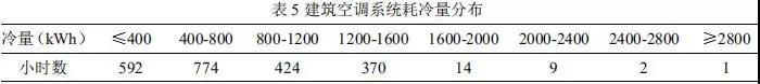 利用DeST對(duì)建筑逐時(shí)需要冷量分布情況進(jìn)行分析,分析結(jié)果見表5??梢园l(fā)現(xiàn),冷量需求在低于1600kW的范圍內(nèi)比較集中,尤其是冷量需求低于1200kW的小時(shí)數(shù)占到需要開啟冷機(jī)總小時(shí)數(shù)的60%。