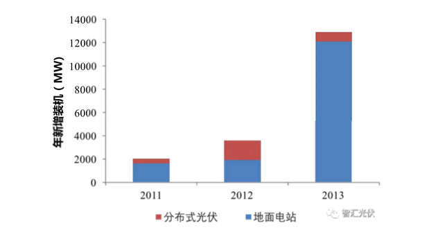 明確的電價政策,讓業(yè)主有了明確的收益預期,大大激發(fā)了企業(yè)的投資積極性。2011當年,新增裝機就達到2GW,同比增長300%,中國的光伏電站正式進入GW級時代。2013年,年新增裝機甚至達到了近13GW。
