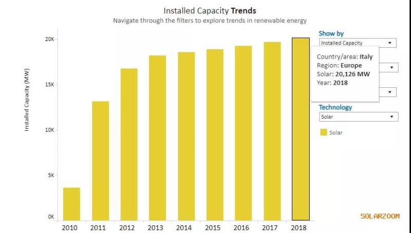 時間來到2019年底,在這一年,我們見證了意大利光伏市場的“復興”,新增裝機量似乎結束蟄伏期,今年有望超過600MW,2020年有望沖擊1GW。