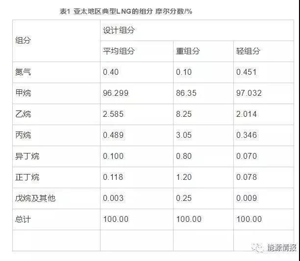 目前LNG接收站主要從東南亞地區(qū)、中東地區(qū)或者澳大利亞地區(qū)進口,亞太地區(qū)LNG氣源的組成和特性如表 1 所示。