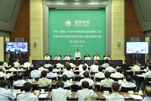 當(dāng)日,準(zhǔn)東—皖南±1100千伏特高壓直流輸電工程、蘇通1000千伏特高壓交流GIL綜合管廊工程竣工投產(chǎn)大會(huì)在京召開。會(huì)議深入學(xué)習(xí)貫徹習(xí)近平新時(shí)代中國(guó)特色社會(huì)主義思想,落實(shí)習(xí)近平總書記“四個(gè)革命、一個(gè)合作”能源安全新戰(zhàn)略,加快建設(shè)“三型兩網(wǎng)、世界一流”企業(yè),為實(shí)現(xiàn)“兩個(gè)一百年”奮斗目標(biāo)貢獻(xiàn)力量。