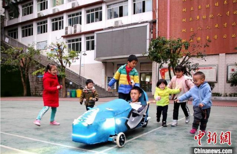 中新網(wǎng)瀘州12月2日電 (鄒立楊 王超明)“我從小特別喜歡汽車,讀初中時(shí)就夢想造一輛新能源‘汽車’?!彼拇ㄊo州市江南職業(yè)中學(xué)學(xué)生于勇俊的夢想終于成真。近日,他利用2000余元零花錢,自行研制出一輛新能源“汽車”:不需加氣、不需加油,只需充滿電,就能達(dá)到時(shí)速45公里、續(xù)航30公里。
