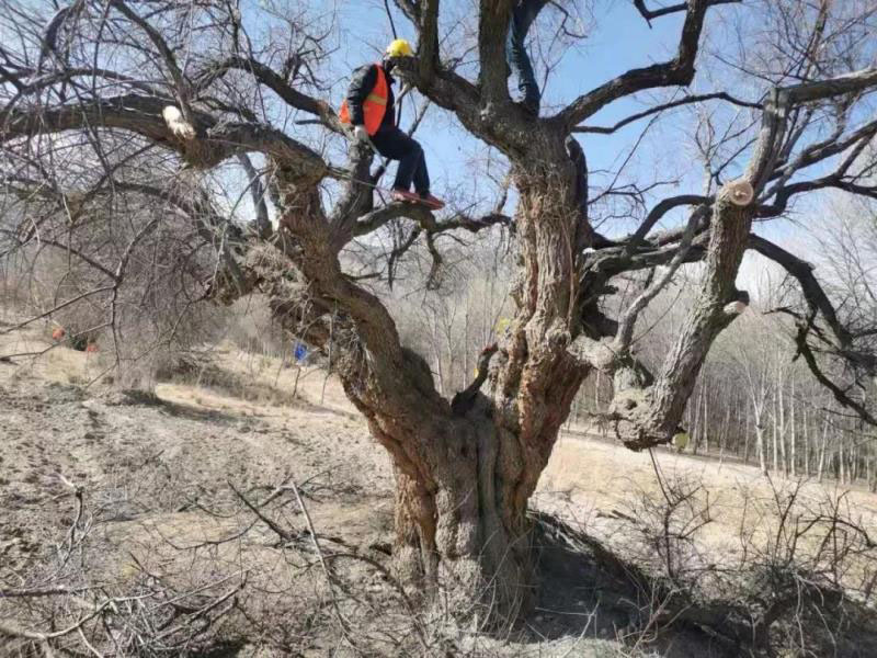 12月16日,移植檉柳前,工人正在砍樹枝。受訪者供圖