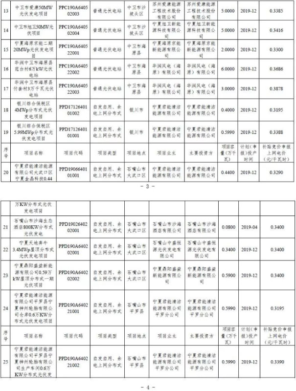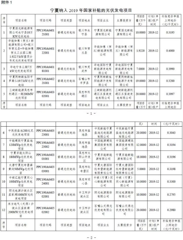 附件:寧夏納入2019年國家補貼的光伏發(fā)電項目