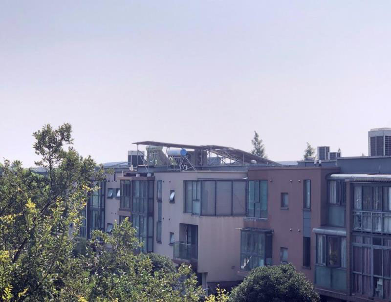 站在后排別墅的3樓露臺(tái)上,更能一睹491號(hào)屋頂電池板的全貌。整塊電池板傾斜角度大約在20度,北端最高處足有2米高,亮晃晃豎在別墅樓頂頗為突出扎眼。后排別墅居民陳女士告訴記者,原本前排別墅樓頂非常平坦,在小區(qū)高大綠化掩映之下,從后排別墅露臺(tái)看出去視野開闊,毫無(wú)遮擋。但如今,一開窗視線就難以從前方的太陽(yáng)能電池板上移開,“景致全被破壞了,讓人難以接受?!?