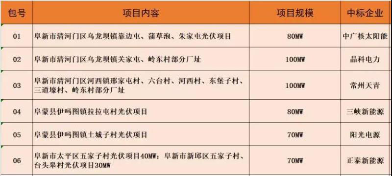 7月3日,遼寧阜新市500MW平價(jià)上網(wǎng)光伏資源競(jìng)爭(zhēng)性開發(fā)項(xiàng)目公示中標(biāo)結(jié)果,中廣核太陽能開發(fā)有限公司、晶科電力科技股份有限公司、常州天青新能源有限公司(天合光能)、中國(guó)三峽新能源有限公司、陽光電源股份有限公司、浙江正泰新能源開發(fā)有限公司分別中標(biāo)第001、002、003、004、005、006標(biāo)段。