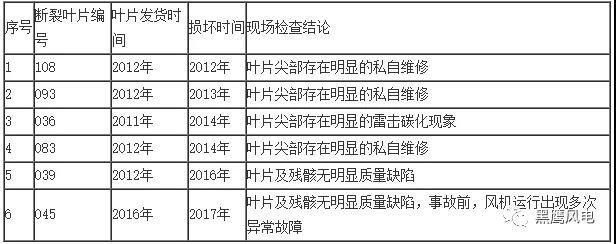 中復(fù)連眾其后發(fā)文澄清,此報(bào)告沒(méi)有全面、客觀的反映事實(shí),在事件處理的過(guò)程中,責(zé)任認(rèn)定并沒(méi)有得到任何第三方機(jī)構(gòu)的正式確認(rèn),僅依據(jù)單方面的推測(cè)即對(duì)事故原因做出了定性判斷,未經(jīng)過(guò)我司的確認(rèn)許可即對(duì)外公布,對(duì)我公司的企業(yè)形象造成了嚴(yán)重的影響,是對(duì)于葉片制造企業(yè)名譽(yù)的損害。下表為中復(fù)連眾整理的昌圖天橋山項(xiàng)目折損葉片信息: