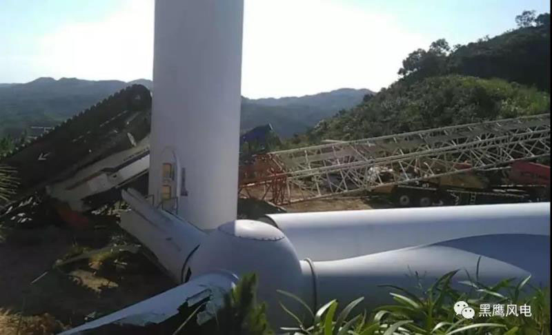 事故 34 ——福建霞浦某風(fēng)電場(chǎng)發(fā)生吊車倒塌。2018年8月6日下午,福建霞浦某風(fēng)電場(chǎng)發(fā)生吊車倒塌事故,當(dāng)?shù)卮迕衩枋?,履帶吊倒下的聲音幾里外的村莊都能聽到。據(jù)悉,該吊車是在維修被“瑪莉亞”臺(tái)風(fēng)吹倒的風(fēng)車時(shí)發(fā)生的事故。