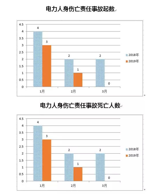(二)一季度未發(fā)生電力建設(shè)人身傷亡責(zé)任事故,事故起數(shù)和死亡人數(shù)均同比減少4起和4人。