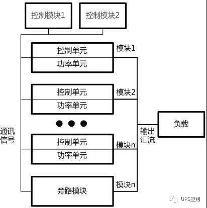 當(dāng)市電丟失時(shí),集中控制模塊會(huì)自激產(chǎn)生同步信號(hào)發(fā)送給各個(gè)UPS模塊來(lái)保證各單元的輸出同頻同相。同時(shí)在均流的控制實(shí)現(xiàn)形式方面,集中式架構(gòu)的模塊化UPS依靠控制模塊來(lái)檢測(cè)整個(gè)系統(tǒng)的負(fù)載電流,然后除以系統(tǒng)模塊數(shù)量來(lái)作為各個(gè)UPS模塊的均流參考值,進(jìn)而與各模塊輸出電流比較后求出偏差值來(lái)不斷調(diào)整各模塊的輸出電流,以保證系統(tǒng)內(nèi)模塊間良好的均流度。分布+集中控制邏輯模式的優(yōu)點(diǎn)在于采用獨(dú)立的均流與邏輯控制單元,均流度更好,且控制邏輯層級(jí)清晰,各功率模塊之間不存在競(jìng)爭(zhēng)關(guān)系,軟件邏輯可靠性較高。為了保證集中控制單元的可靠性,避免單點(diǎn)故障,一般采用該架構(gòu)的UPS控制單元及通訊線路均會(huì)做1+1備份。1+1熱備份是最常用的備份方式,其可靠性在各類系統(tǒng)長(zhǎng)期運(yùn)行實(shí)踐中已得到驗(yàn)證。