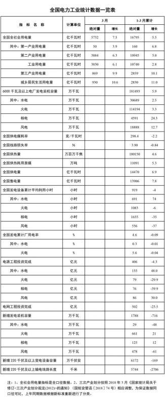 1-3月,全社會用電量累計16795億千瓦時,同比增長5.5%,與去年同期相比下降4.3個百分點。分產(chǎn)業(yè)看,第一產(chǎn)業(yè)用電量160億千瓦時,同比增長6.8%;第二產(chǎn)業(yè)用電量10945億千瓦時,同比增長3.0%;第三產(chǎn)業(yè)用電量2859億千瓦時,同比增長10.1%;城鄉(xiāng)居民生活用電量2830億千瓦時,同比增長11.0%。