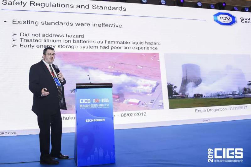 TüV南德此次聯(lián)合主辦第九屆中國(guó)國(guó)際儲(chǔ)能大會(huì),以實(shí)際行動(dòng)踐行大會(huì)主題“探討儲(chǔ)能商業(yè)化之路,服務(wù)全球綜合能源市場(chǎng)”,在TüV南德專(zhuān)場(chǎng)國(guó)際儲(chǔ)能市場(chǎng)與政策分會(huì)場(chǎng)上, TüV南德全球風(fēng)險(xiǎn)顧問(wèn)公司常務(wù)顧問(wèn)兼美國(guó)儲(chǔ)能系統(tǒng)技術(shù)委員會(huì)主席James Biggins先生,針對(duì)儲(chǔ)能電站可能存在的損失情況,詳析相關(guān)的技術(shù)預(yù)防措施。TüV南德結(jié)合多年的光伏組件、逆變器、光伏材料的測(cè)試經(jīng)驗(yàn),以電站投資者“健康體檢專(zhuān)家與保健醫(yī)生”的身份,通過(guò)測(cè)試、評(píng)估、技術(shù)改進(jìn)來(lái)提升儲(chǔ)能電站的效率,為儲(chǔ)能電站市場(chǎng)健康發(fā)展保駕護(hù)航并持續(xù)努力。