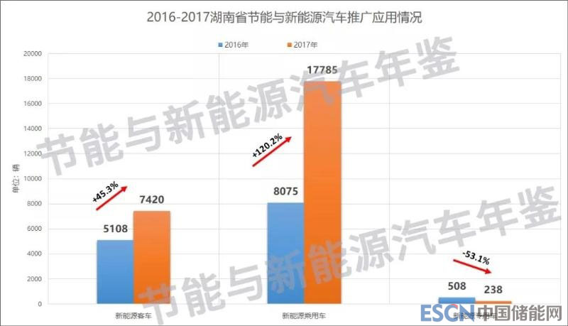 推廣概況:2017年湖南省新能源汽車推廣總量為25443輛,同比增長85.8%。新能源客車7420輛(純電動客車6509輛、插電式混合動力客車911輛),相比去年的5108輛同比增長45.3%;新能源乘用車17785輛,相比去年的8075輛同比增長120%;純電動專用車 ,相比去年的508輛同比下降53.2%。