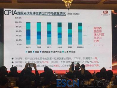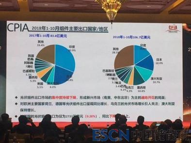 組件出口方向,集中度繼續(xù)了前幾年的趨勢,在逐漸降低。印度市場占3成,今年砍掉一半,日本也下降了10個百分點。很多新興市場也在發(fā)展當中。