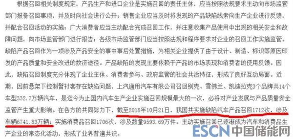 中國儲能網(wǎng)訊:10月31日,國家質(zhì)檢總局缺陷產(chǎn)品管理中心發(fā)布公告稱:截至2018年10月21日,我國共實施缺陷汽車產(chǎn)品召回1712次,涉及車輛6741.83萬輛;2018年發(fā)生新能源汽車起火事件40余起。