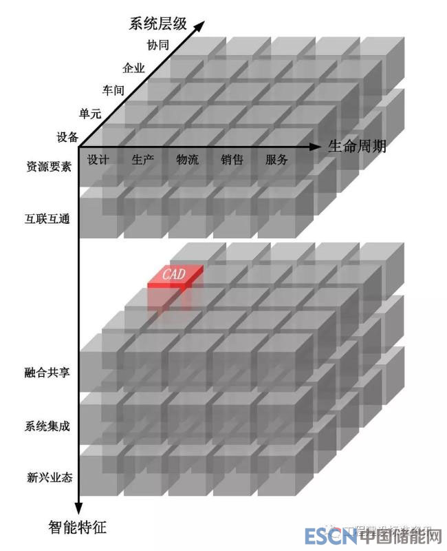 智能制造系統(tǒng)架構(gòu)通過三個維度展示了智能制造的全貌。為更好的解讀和理解系統(tǒng)架構(gòu),以計算機輔助設(shè)計(CAD)、工業(yè)機器人和工業(yè)網(wǎng)絡(luò)為例,詮釋智能制造重點領(lǐng)域在系統(tǒng)架構(gòu)中所處的位置及其相關(guān)標準。