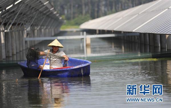 中國儲能網(wǎng)訊:江蘇省金湖縣位于長江下游,水域面積廣闊。近年來,金湖縣結合地理環(huán)境,在銀涂鎮(zhèn)寶應湖湖邊建設100兆瓦“漁光互補”項目,將灘涂地改造為魚塘,上層用于光伏發(fā)電,下層為水產(chǎn)養(yǎng)殖,做到“一地兩用”,提高了資源利用率和單位面積土地的經(jīng)濟價值。 新華社記者 李雨澤 攝