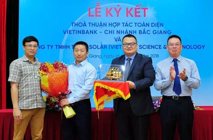 天合光能科技(越南)有限公司總經(jīng)理仝斌先生與越南工商銀行北江分行行長何春長先生分別代表合作雙方在儀式現(xiàn)場簽字。