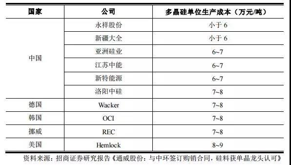 未來,包頭、樂山兩地新項目投產(chǎn)后,公司多晶硅的生產(chǎn)成本有望降至 4 萬元/噸,相較于國內(nèi)外普遍大于 7 萬元/噸的生產(chǎn)成本,多晶硅成本優(yōu)勢較為明顯。