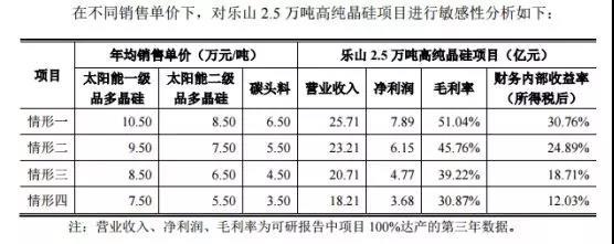 公司指出,盡管目前多晶硅價格仍在下滑,但對兩個募投項目進行敏感性測試后,財務內(nèi)部收益率(所得稅后)最低仍為 15.26%、12.03%,仍具有較好的投資回報率,募投項目的實施前景較好。
