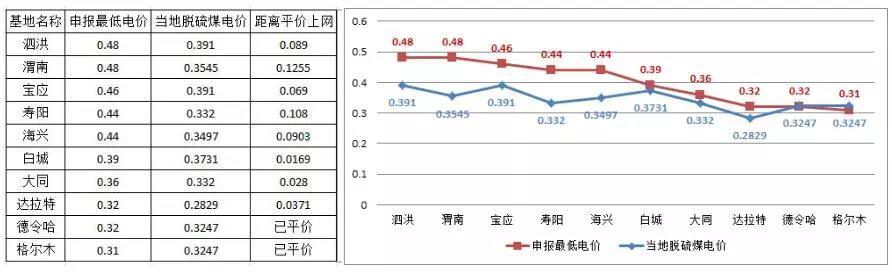 第三批領跑者投標電價對比表