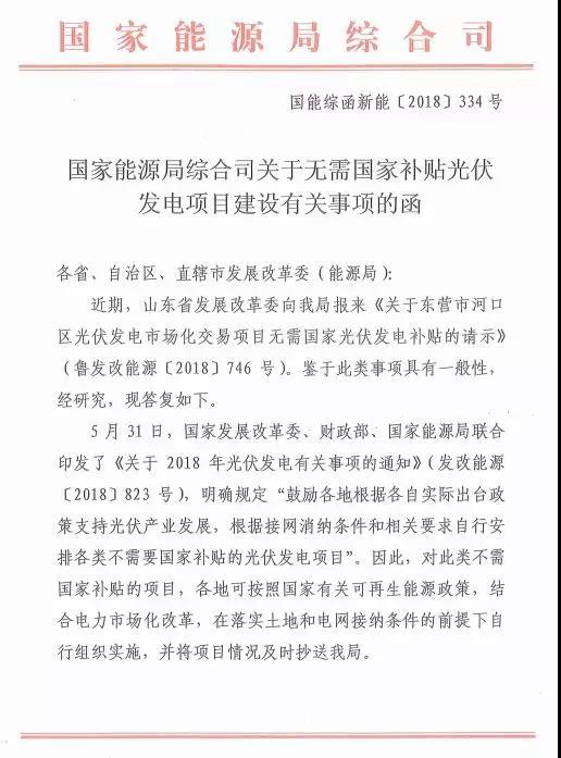 中國儲能網(wǎng)訊:日前,國家能源局綜合司下發(fā)《關(guān)于無需國家補(bǔ)貼光伏發(fā)電項目建設(shè)有關(guān)事項的函》明確“對此類不需國家補(bǔ)貼的項目,各地按照國家有關(guān)可再生能源政策,結(jié)合電力市場化改革,在落實土地和電網(wǎng)接納條件下自行組織實施”。