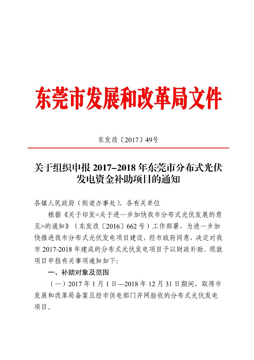 根據(jù)《關(guān)于組織申報2017-2018年東莞市分布式光伏發(fā)電資金補助項目的通知》(東發(fā)改〔2017〕49號),我市2017-2018年分布式光伏專項資金補助項目總?cè)萘繛?20MW,項目建成并網(wǎng)后按補助申請時間先到先得,現(xiàn)將我市補助項目容量有關(guān)情況通知如下: