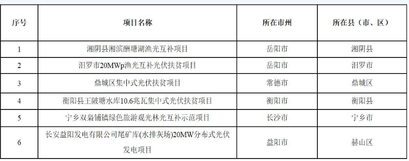 湖南省2017年集中式光伏扶貧電站建設(shè)規(guī)模增補(bǔ)項(xiàng)目公示