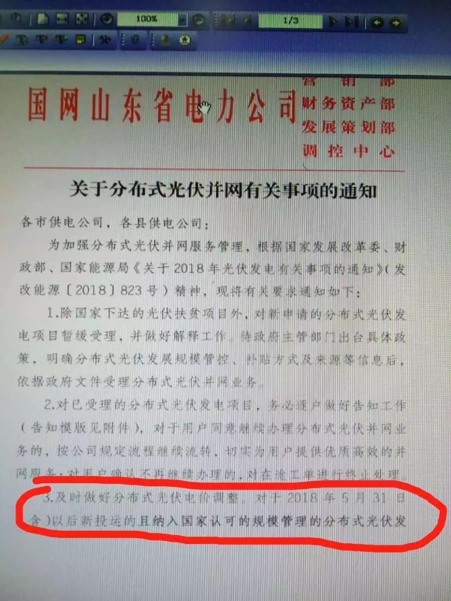 中國儲能網(wǎng)訊:三部委“5-31”新政下發(fā)后,各級省市相關(guān)政策相繼跟進(jìn)。據(jù)國網(wǎng)山東省電力公司下發(fā)的《關(guān)于分布式光伏并網(wǎng)有關(guān)事項(xiàng)的通知》,山東省對新申請的分布式光伏發(fā)電項(xiàng)目暫緩受理,補(bǔ)貼政策開始執(zhí)行“5-31”新政。