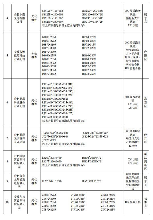 中國儲能網(wǎng)訊:根據(jù)《合肥市人民政府關(guān)于促進光伏產(chǎn)業(yè)持續(xù)健康較快發(fā)展的若干意見》(合政〔2016〕93號)和《合肥市光伏產(chǎn)品推廣發(fā)布暫行辦法》(合經(jīng)信電子〔2017〕107號),經(jīng)企業(yè)申請,縣(市)區(qū)、開發(fā)區(qū)資格審查、初審上報,市經(jīng)信委、發(fā)改委、質(zhì)監(jiān)局及相關(guān)專家現(xiàn)場聯(lián)合查驗,現(xiàn)將擬納入《2018年合肥市光伏產(chǎn)品推廣目錄(第一批)》的企業(yè)名單予以公示。公示時間為2018年6月6日至6月13日。