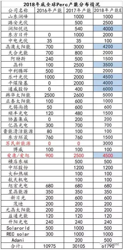 附贈一個小彩蛋(2018年底perc產(chǎn)能統(tǒng)計):