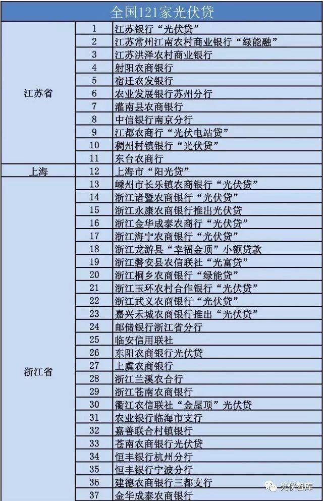 據(jù)統(tǒng)計,目前已經(jīng)有19省市121家銀行開展了“光伏貸”業(yè)務(wù)。