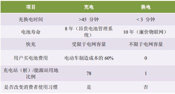 本項(xiàng)目所建設(shè)能源站擬采取自主研發(fā)的“動(dòng)力電池更換”為主兼顧充電的模式。相較于充電模式,在更換時(shí)間、電池壽命、征地占地、投資回收期等方面,換電模式都體現(xiàn)出較為顯著的競(jìng)爭(zhēng)優(yōu)勢(shì)(見(jiàn)下圖)。