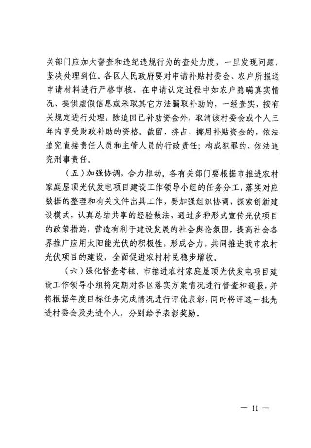 同時(shí),為鼓勵(lì)農(nóng)村居民家庭積極參與及配合開展屋頂光伏發(fā)電項(xiàng)目建設(shè),在項(xiàng)目建成后市財(cái)政一次性給予每家農(nóng)戶3000元獎(jiǎng)勵(lì)資金。