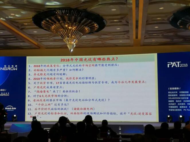 中國儲能網(wǎng)訊:3月13日,由陽光電源主辦的“PAT2018愛光伏一生一世”質(zhì)勝分布創(chuàng)新領(lǐng)跑光伏先進技術(shù)研討會于3月13日在合肥皇冠假日酒店如期開幕。國家發(fā)改委能源研究所原研究員王斯成受邀參會,并就2018年分布式有哪些熱點與在座嘉賓作了詳細(xì)的探討。