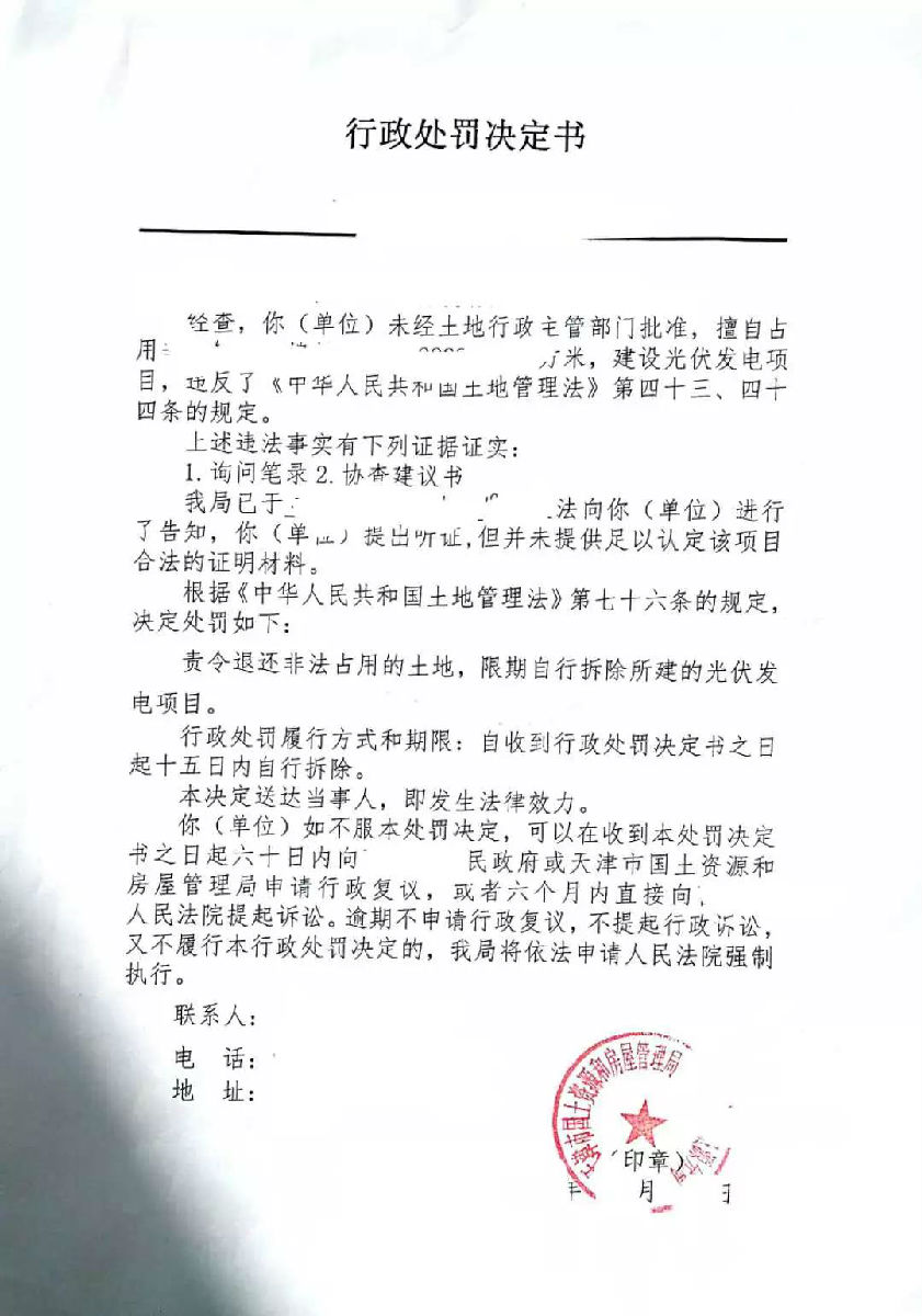 先回顧下2016-17年天津幾個(gè)光伏電站收到的處罰單吧: