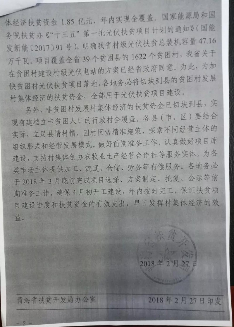 青海安排1.85億元扶貧資金用于光伏扶貧項(xiàng)目建設(shè)的通知