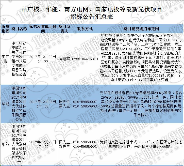 三、中國華能集團公司2017年領跑者項目光伏逆變器設備框架協(xié)議采購招標公告