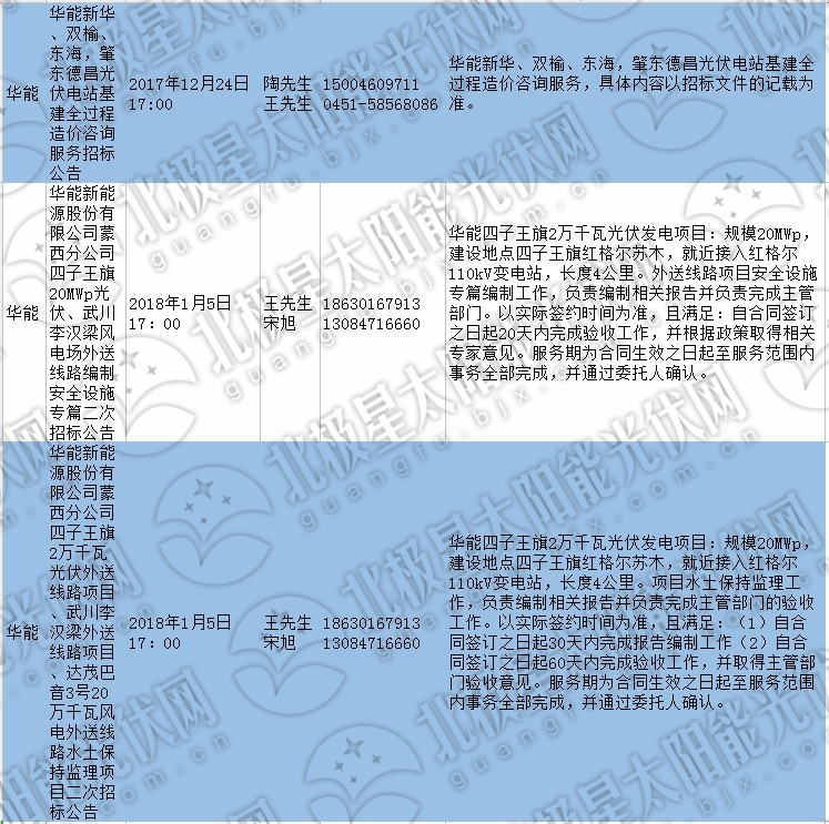 四、華能新華、雙榆、東海,肇東德昌光伏電站基建全過程造價咨詢服務招標公告