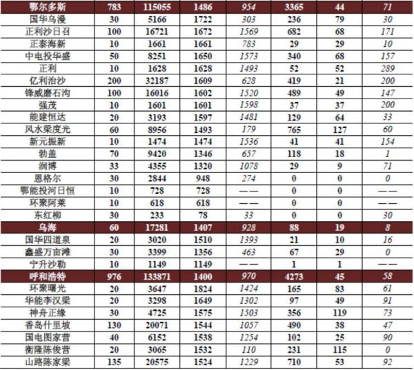 具體到各地區(qū)看,鄂爾多斯、烏海、呼和浩特都從去年同期的不到1000小時上升至2017年的1400小時左右。