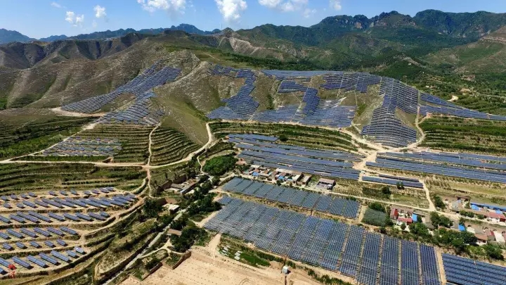 位于中條山南側(cè)60度荒坡上的“藍盔甲”開始收獲“陽光”,源源不斷將太陽能轉(zhuǎn)化的電能通過電網(wǎng)送入千家萬戶,綿延40余公里。