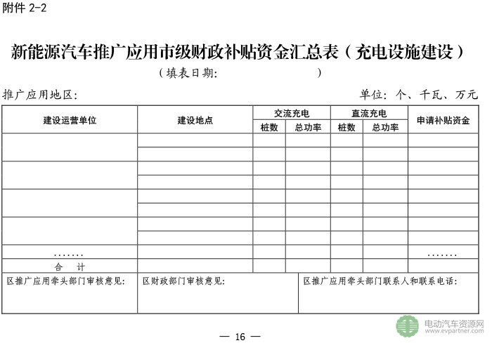 充電設(shè)施按建設(shè)所在地原則申請(qǐng)財(cái)政補(bǔ)貼資金。2018年3月底前,各區(qū)新能源汽車(chē)推廣應(yīng)用牽頭部門(mén)和財(cái)政局向市經(jīng)信委和市財(cái)政局提交本地區(qū)審查通過(guò)的充電設(shè)施建設(shè)申請(qǐng)撥付資金報(bào)告、新能源汽車(chē)推廣應(yīng)用市級(jí)財(cái)政補(bǔ)貼資金匯總表(充電設(shè)施建設(shè))(附件2-2),并提供以下材料: