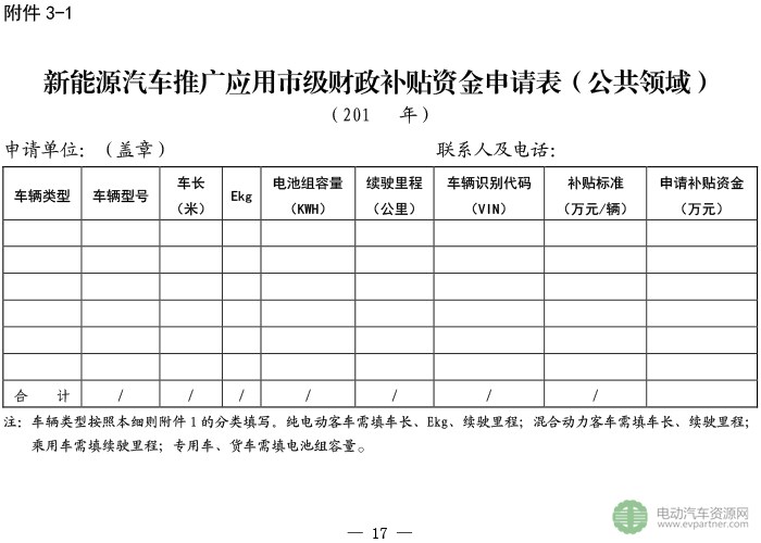 1.新能源汽車(chē)推廣應(yīng)用市級(jí)財(cái)政補(bǔ)貼資金申請(qǐng)表(公共領(lǐng)域)(附件3-1);