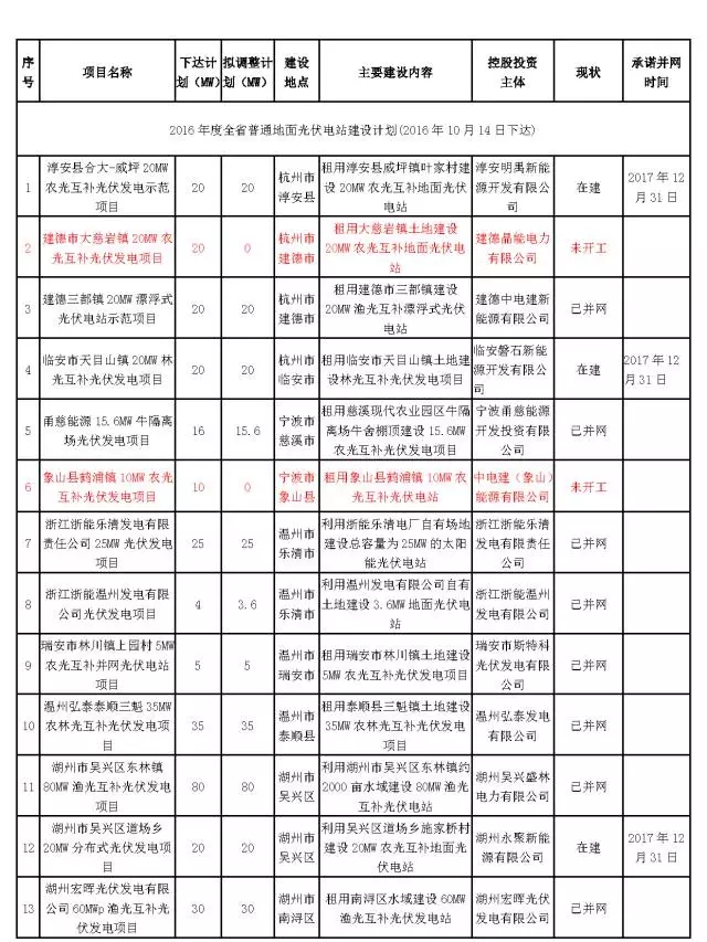 2016年度全省普通地面光伏電站建設(shè)計(jì)劃調(diào)整表